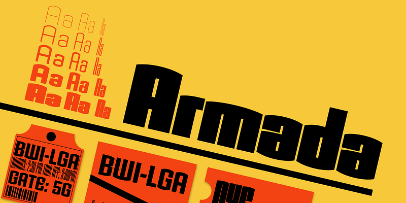 Tobias Frere-Jones began Armada in 1987. An experiment in algorithmic design, Armada follows the verticals and flat arches so often to be found in the architectural geometry of cast iron and brickwork in 19th-century American cityscapes. All of the weights and widths of Armada were drawn by Frere-Jones, offering a full display series of remarkable richness, all variations in a truly architectural theme & discipline.