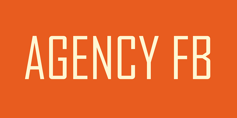 ATF Agency Gothic was designed by Morris Fuller Benton in 1932 as a lone titling typeface. In 1990, David Berlow saw potential in the squared forms of the narrow, monotone capitals. He designed a lowercase and added a bold to produce Font Bureau Agency, an immediately popular hit. Sensing its potential to be than just a useful condensed face, Font Bureau developed Agency into a major series offering five weights in five widths; FB 1990-95
