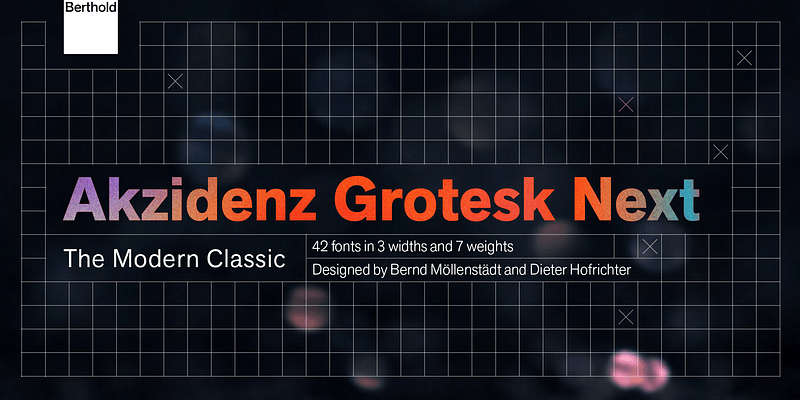 Berthold first published Akzidenz-Grotesk in 1896. The design originates from Royal Grotesk light by Ferdinand Theinhardt who also supplied the regular, medium and bold weights. This new interpretation by Bernd Möllenstädt and Dieter Hofrichter has been conceived as a single family that uses the principal shape characteristics of Akzidenz-Grotesk which now appear throughout all the weights. The x-height has been readjusted as well as the weights to obtain a more consistent design throughout the family from extralight to black.