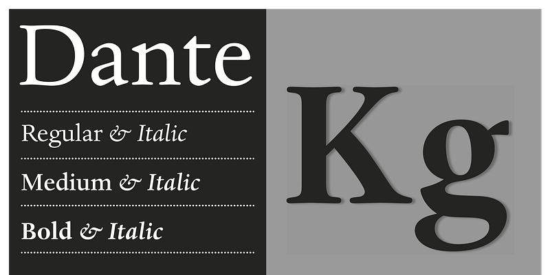 Dante was designed by Giovanni Mardersteig. Mardersteig started work on Dante after the Second World War when printing at the Officina Bodoni returned to full production. He drew on his experience of using Monotype Bembo and Centaur to design a new book face with an italic which worked harmoniously with the roman. Originally hand-cut by Charles Malin, Dante was adapted for mechanical composition by Monotype in 1957. The new digital font version has been re drawn, by Monotype's Ron Carpenter, free from any restrictions imposed by hot metal technology. The Dante font family was issued in 1993 in a range of three weights with a set of titling capitals. Dante is a beautiful book face which can also be used to good effect in magazines, periodicals etc. Dante® font field guide including best practices, font pairings and alternatives.