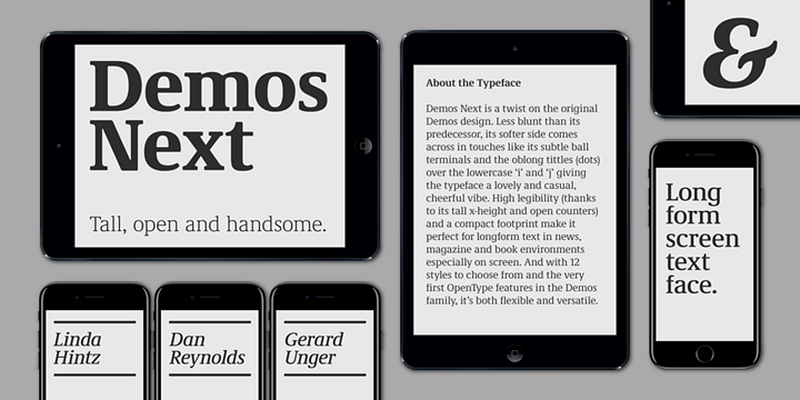 License [Demos Next](https://www.myfonts.com/fonts/linotype/demos-next/) on MyFonts