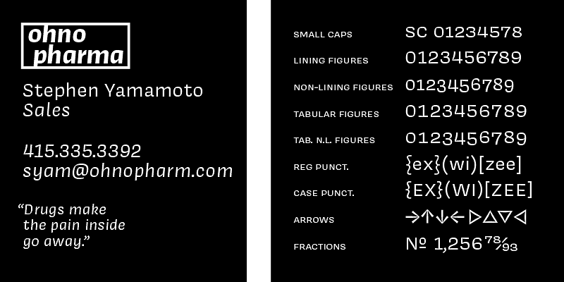 When even the most rounded geometric sans is still too harsh, Ohno Softie delivers the goods. Not only is every terminal round, but every negative shape is as well, making sweet, syrupy goodness out of every word you set.